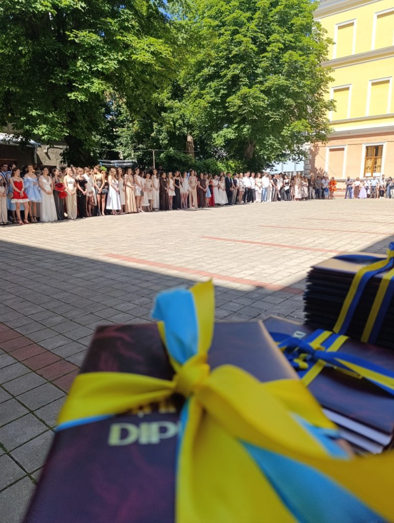 30 червня урочистості, присвячені врученню дипломів випускникам нашого коледжу, розпочалися звучанням гімну України, хвилиною мовчання та покладанням квітів до меморіальних дошок випускникам коледжу, які загинули під час виконання бойових завдань із захисту державного суверенітету та територіальної цілісності України.