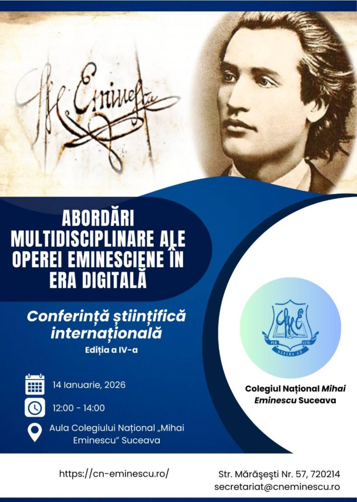 На запрошення Сучавського національного коледжу імені Міхая Емінеску, відповідно до базової Угоди про співпрацю між Педагогічним фаховим коледжем Чернівецького національного університету ім. Ю.Федьковича, Сучавського національного коледжу імені Міхая Емінеску та Сучавською філією Союзу українців Румунії від 09.12.2022 року, викладачі нашого коледжу взяли участь 14 січня 2026 року у Міжнародній науково-практичній конференції, присвяченій Міхаю Емінеску. Конференція проводилася в онлайн та офлайн режимі Сучавським коледжем, у якій обміном досвіду роботи освітньої діяльності поділилися педагоги з Румунії, Німеччини, Молдови та України, представляли своє бачення мультифункціональних, методико-професійних та теоретико-інноваційних аспектів організації навчання студентів/учнів та методик їх втілення в освітні процеси.